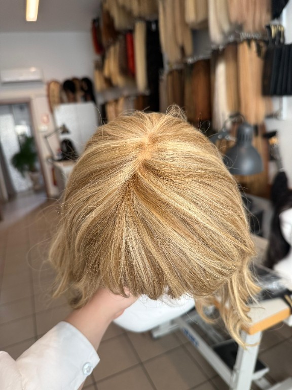 La Parrucca Roma è un'elegante parrucca realizzata con capelli naturali. Con la sua chiusura e il retro a macchina, offre un aspetto naturale e una vestibilità confortevole.