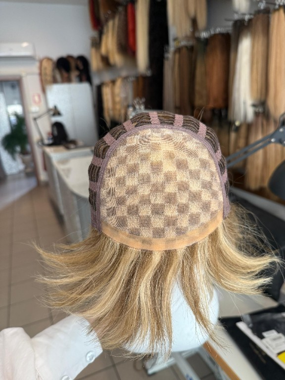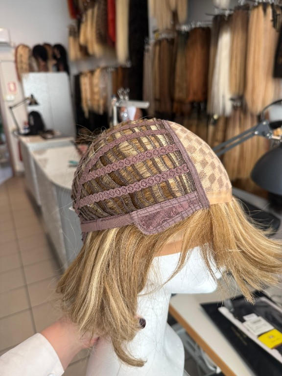 La chiusura presente sulla Parrucca Roma permette di ottenere una linea di attaccatura dei capelli naturale, mentre il retro a macchina assicura una distribuzione uniforme dei capelli su tutta la parrucca.